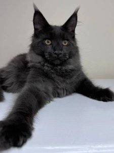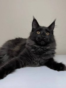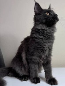 At just a few months old, Kleopatra already displays the iconic traits of a Maine Coon kittens—a lush, fluffy coat, curious spirit, and affectionate heart that make her an ideal companion.