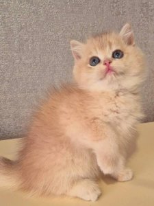 Like’s short, plush coat, round face with chubby cheeks, and large, expressive eyes showcase the signature traits of British Shorthair kittens. At just a few months old, he already radiates the timeless elegance and warmth his breed is known for.