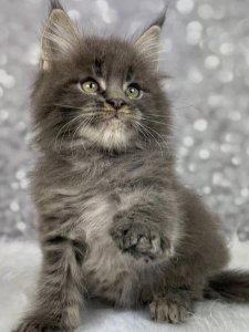 Meet Mario, the majestic and playful purebred Maine Coon kitten! With his luxurious long fur, tufted ears, and magnificent fluffy tail, Mario is a breathtaking example of this beloved breed, known for its impressive size, striking beauty, and affectionate personality.