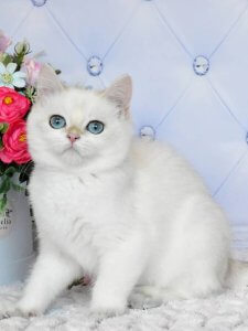Mark’s plush coat and round face, adorned with chubby cheeks and large, expressive eyes, perfectly showcase the timeless elegance of British Shorthair kittens. At just a few months old, Mark already embodies the hallmark features of his breed, radiating warmth and gentle affection that make him irresistible.