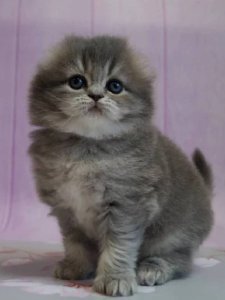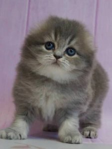 Mina showcases all the beloved traits of Highland Fold kittens, from her big, round eyes to her soft, luxurious coat that invites endless cuddles. At just a few months old, she’s already a shining example of the charm and grace her breed is known for.