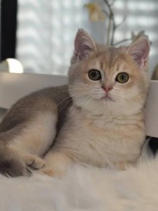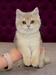 Mirosha embodies all the hallmark features of British Shorthair kittens. Her short, plush coat, round face with irresistibly chubby cheeks, and large, expressive eyes make her utterly captivating.