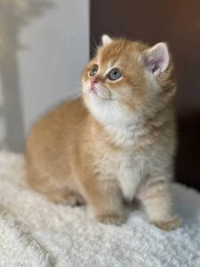 Nika’s round face with chubby cheeks, plush coat, and expressive eyes perfectly embody the timeless beauty of the British Shorthair kittens. At just a few months old, she’s already a shining example of the warmth and grace that make this breed so beloved.