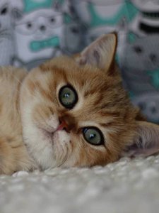 At just a few months old, Bella already exemplifies the classic traits of British Shorthair kittens—her short, plush coat, round face with adorable chubby cheeks, and large, soulful eyes that convey her sweet and gentle personality. She’s as friendly as she is beautiful, making her a delightful addition to any family.