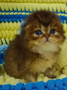 Say hello to Nutella, a Highland Fold kitten as sweet as her name and as charming as her fluffy coat. With her folded ears and playful sparkle, Nutella is a heart-stealer in the making, ready to fill your home with joy and snuggles.