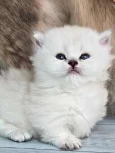 At just a few months old, Odin already shows off the signature features of the Munchkin kittens: a long, plush body perched on tiny legs, round eyes full of curiosity, and a coat that’s made for petting. His charm is as unique as his silhouette!