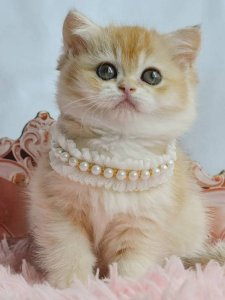 At just a few months old, Olesya showcases the hallmark features of the British Shorthair breed. Her short, luxurious coat is irresistibly soft, while her round face with chubby cheeks adds to her adorable appeal. Olesya’s large, expressive eyes radiate warmth and curiosity, making it hard to resist her charm.