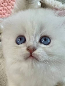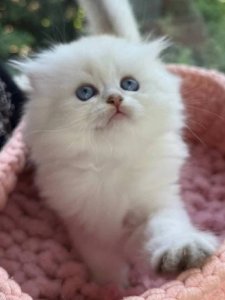 With her signature folded ears, big round eyes, and luxuriously fluffy coat, Olivia is a perfect example of the Highland Fold breed’s unique beauty. Just a few months old, she already shows off the sweet nature and endearing curiosity that make this breed so beloved.