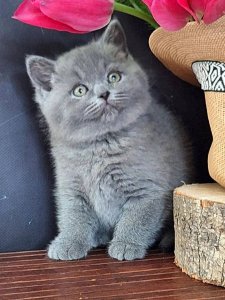She perfectly represents the beloved traits of British Shorthair kittens—calm, affectionate, and wonderfully cuddly. Whether she’s following you around the house or nestled on your lap, Olympia fills every moment with quiet joy and soft purrs.