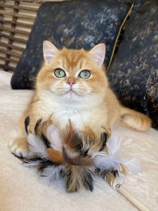 From his round, teddy bear-like face to those bright, expressive eyes, Ostap embodies all the cherished qualities of the British Shorthair kittens. His chubby cheeks and laid-back temperament make him not just irresistibly cute, but also the ultimate cuddle buddy.