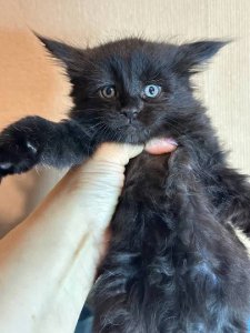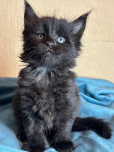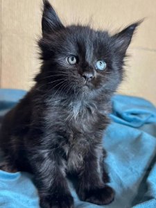At just a few months old, Pan Debusyan is already displaying his luxurious long fur, tufted ears, and fluffy tail, signature traits of Maine Coon kittens. His mesmerizing green eyes and playful, curious nature will capture your heart and bring endless joy to your home.