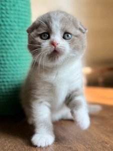 Meet Pasha, a purebred Scottish Fold kitten whose gentle gaze and signature folded ears make him the definition of feline charm. With his calm demeanor and affectionate spirit, Pasha is ready to bring softness and joy into your home.