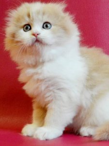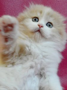Meet Peach, the Highland Fold kitten who’s as unique as lovable. With his folded ears and playful personality, Peach is sure to capture hearts and light up every room he enters.