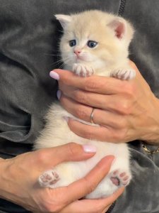 Pearl’s plush coat and round, expressive eyes reflect the signature elegance of British Shorthair kittens. Her adorable, chubby cheeks and calm, cuddly personality make her the perfect companion for cozy moments and quiet joy.