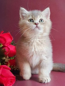 Plusha’s velvety soft fur, round face with adorable chubby cheeks, and big, expressive eyes make her a shining example of British Shorthair kittens. She embodies the breed’s signature elegance, sweetness, and irresistible charm even at just a few months old.