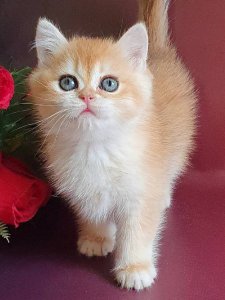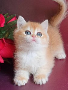 Just a few months old, Polly already exhibits the classic traits of the British Shorthair kittens: her short, plush fur, adorable round face framed by chubby cheeks, and expressive, wide-set eyes that radiate sweetness and curiosity. This little beauty is as loving as she is charming, always ready to snuggle up and make every moment brighter.