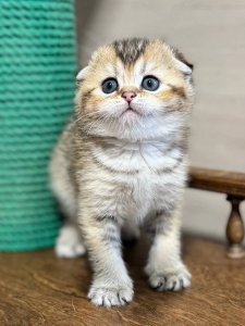 Even at a few months old, Pompey already displays the defining traits of the Scottish Fold kittens — a soft, rounded face, luxuriously thick fur, and a gentle, affectionate temperament. Whether he’s playing with toys or curling up in your lap, Pompey brings comfort and charm to every moment.