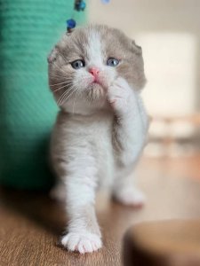 At just a few months old, Ponchik already shows off the hallmark traits of the Scottish Fold kittens—including his folded ears, round face, and velvety-soft coat. His gentle, loving personality makes him a perfect companion for cozy cuddles and playful moments alike.