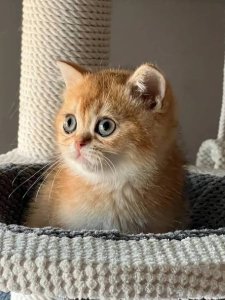 At just a few months old, Pumpkin already showcases the hallmark features of Scottish Straight kittens. Pumpkin’s large, round eyes and plush, silky coat make him adorable and irresistible to snuggle. He’s well-socialized and gets along beautifully with children and other pets, making him the ideal addition to a busy and loving home.