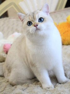 At just a few months old, Quinn already showcases the hallmark features of the British Shorthair kittens. His dense, velvety coat, round face with adorable chubby cheeks, and striking odd-colored eyes make him a truly special kitten.