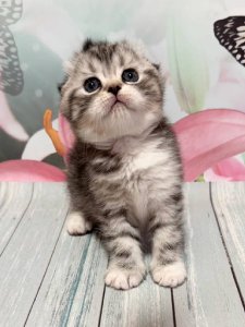 Rada’s affectionate nature and gentle personality make her the perfect cuddle companion. Her enchanting eyes and adorable features are hallmark traits of the Scottish Fold kittens, making her a truly special addition to any family.