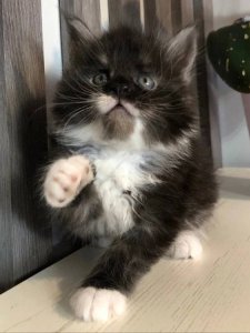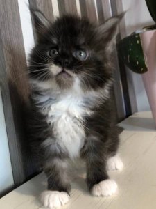 Her striking green eyes sparkle with curiosity, and her gentle yet playful personality perfectly embodies the spirit of a Maine Coon kittens. Even at just a few months old, Regina exudes confidence, warmth, and a touch of feline royalty.
