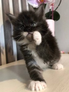 Meet Regina, a purebred Maine Coon kitten whose grace and energy make her the queen of hearts. With her luxurious long fur, tufted ears, and fluffy tail, Regina is a dazzling example of this beloved breed’s signature splendor.