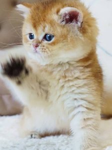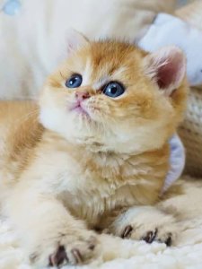 Richi’s luxurious plush coat invites gentle strokes, embodying the timeless elegance of British Shorthair kittens. His round face, with sweet, chubby cheeks and large, expressive eyes, radiates warmth and tenderness. At just a few months old, Richi already showcases all the classic features of his breed.