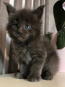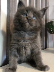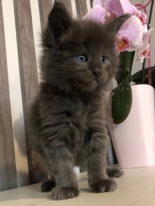 Romeo’s flowing coat and impressive fluffy tail showcase the signature elegance of Maine Coon kittens. His striking green eyes sparkle with curiosity and warmth, perfectly reflecting his playful, adventurous spirit. Even at just a few months old, Romeo is already exploring the world with confident pounces and tender purrs.