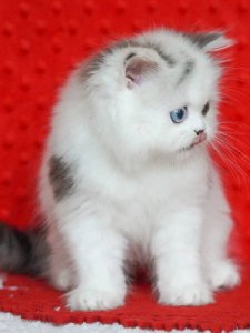 At just a few months old, Romeo is already showcasing the classic traits of the Highland Straight kittens. His straight ears, big round eyes, and irresistibly fluffy coat highlight his natural elegance and charm.