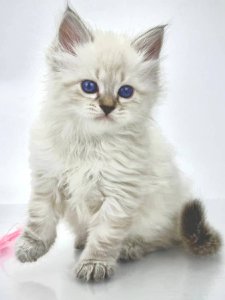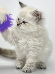Meet Rosalina, the adorable Siberian kitten with a calm and gentle personality. Her long, silky fur, round face, and deep blue expressive eyes make her a stunning example of feline beauty. Known for their remarkable appearance and hypoallergenic coats, Siberian kittens like Rosalina are a perfect choice for families seeking elegance and comfort.