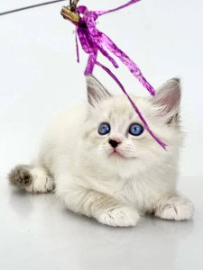 Meet Rurik, the adorable Siberian kitten with a calm and gentle personality. His long, silky fur, round face with chubby cheeks, and deep blue expressive eyes make him a true picture of feline beauty. Known for their stunning appearance and hypoallergenic coats, Siberian kittens like Rurik are the perfect choice for families seeking both elegance and comfort.