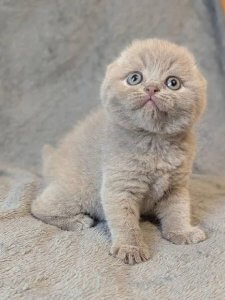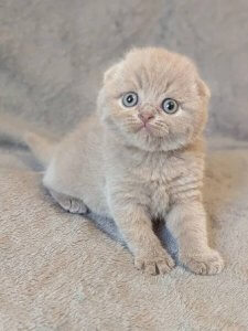 Sabrina’s big, round eyes and gentle demeanor make her the perfect companion for cozy snuggles and warm moments. Even at just a few months old, she embodies the endearing qualities of Scottish Fold kittens, with a personality that’s as soft and sweet as her appearance.