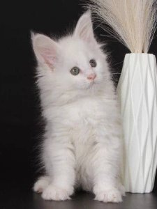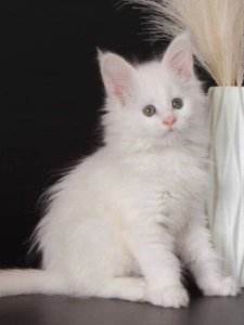 Meet Snow, a majestic Maine Coon kitten whose snowy-soft coat and bright green eyes make him simply unforgettable. With his tufted ears, luxurious fur, and fluffy tail, Snow is already turning heads—and he’s just getting started.