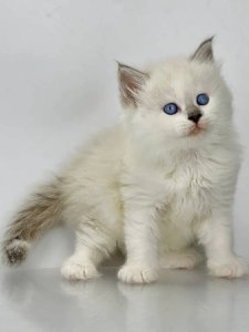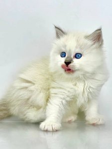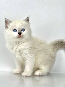 Meet Solomon, the adorable Siberian kitten with a calm and gentle personality. His long, silky fur, round face with chubby cheeks, and deep blue expressive eyes make him a true picture of feline elegance. Siberian cats, known for their stunning appearance and hypoallergenic coats, make kittens like Solomon a perfect choice for families seeking both beauty and comfort.