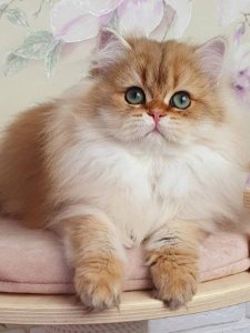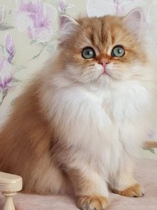 Even at just a few months old, Suzie already displays the hallmark traits of the British Longhair kittens—long, luxurious fur, a round face with charming, chubby cheeks, and large, expressive eyes that melt your heart.