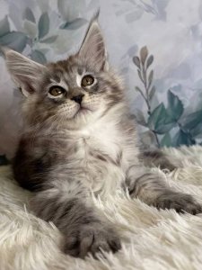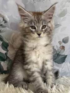 Say hello to Sviti, a striking Maine Coon kitten whose majestic appearance is matched only by his playful, affectionate nature. With his lush long fur, tufted ears, and brilliant green eyes, Sviti is the picture of Maine Coon charm.