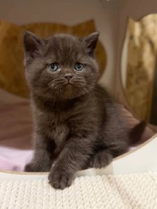 At just a few months old, Teddy is already a stunning representative of the British Shorthair kittens. His plush, velvety blue coat is soft to the touch, and his round face with chubby cheeks gives him a classic, timeless appeal. Add to that his large, expressive eyes that sparkle with curiosity and affection, and you’ve got the perfect kitten!