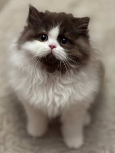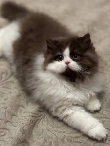 Even at just a few months old, Teddy already embodies all the signature traits of British Longhair kittens—from his plush, flowing fur and chubby cheeks to his round face and affectionate personality. Whether he’s curling up for a nap or quietly exploring his surroundings, Teddy brings a peaceful, heartwarming energy wherever he goes.