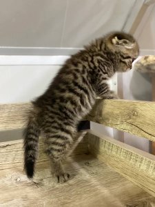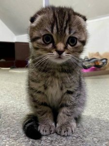Say hello to Tiggres, the epitome of cuteness and love wrapped in a soft, plush coat. With his distinctive folded ears and round, expressive eyes, Tiggres is the perfect Scottish Fold kitten, ready to bring warmth and joy to your home.
