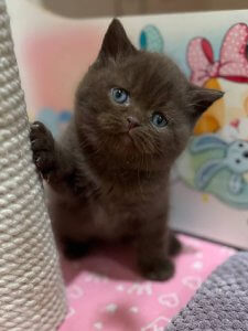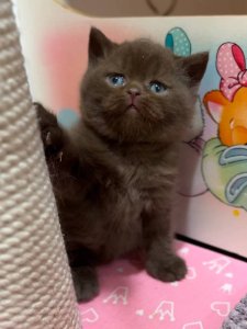 At just a few months old, Tobias already embodies the hallmark features of the British Shorthair kittens. His short, luxurious blue coat is irresistibly soft, while his round face and chubby cheeks give him an undeniably classic and endearing look. His large, expressive eyes are filled with curiosity and warmth, reflecting his gentle and loving personality.