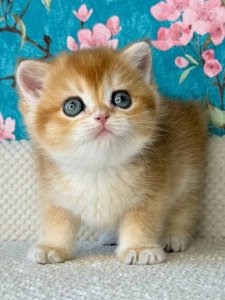 Just a few months old, Tom already displays all the hallmark features of the beloved British Shorthair kittens — including a soft, dense coat, round face with chubby cheeks, and big, soulful eyes that radiate warmth. His gentle, affectionate nature makes him the ideal snuggle buddy and loving companion.