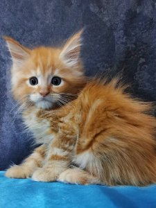 Meet Tom, the Maine Coon kitten whose majestic look and lively personality make him an irresistible addition to any family. With his luxurious coat and friendly nature, Tom is ready to win your heart and fill your home with joy.
