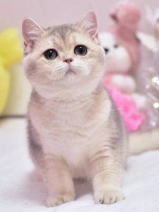 Tonya’s velvety soft fur, round face with adorable chubby cheeks, and big, expressive eyes make her a perfect representation of British Shorthair kittens. She embodies the breed’s signature charm, elegance, and loving temperament even at just a few months old.