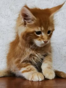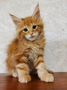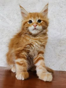Tor’s long, soft fur and tufted ears highlight the elegance of Maine Coon kittens. His fluffy tail, expressive green eyes, and friendly demeanor capture the essence of his breed. Even at just a few months old, Tor radiates the majesty and charm that Maine Coons are loved for.