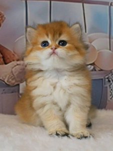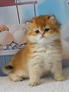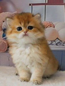 Vatrushka’s deep green eyes and charming round face with chubby cheeks embody the elegance of British Longhair kittens. Her soft fur and affectionate nature make her the perfect snuggle buddy. Even at this young age, Vatrushka displays the classic beauty and gentle temperament her breed is known for.