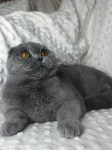 Viliola’s round eyes and sweet, playful personality make her the perfect addition to any family. At just a few months old, she already displays all the endearing traits of Scottish Fold kittens, from her folded ears to her round face and cuddly demeanor.