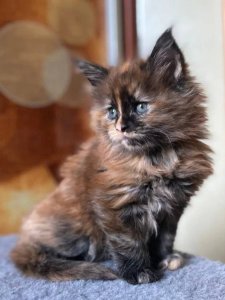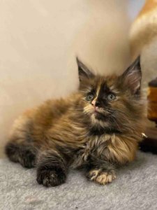 At just a few months old, Vivienne already demonstrates all the endearing qualities of Maine Coon kittens—gentle, intelligent, and affectionate. Whether she’s in full playful mode or nestled in your lap for cuddles, Vivienne brings both adventure and affection to every moment.