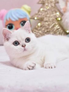 Whitney’s short, plush coat is the epitome of elegance, reflecting the timeless appeal of British Shorthair kittens. Her round face, chubby cheeks, and large, expressive eyes make her irresistible. At just a few months old, Whitney already possesses all the endearing traits of her breed.