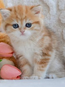 With her signature round face, chubby cheeks, and large, expressive eyes, Wibi is the epitome of British Shorthair kittens. Her velvety fur and calm nature make her the perfect companion for those who cherish elegance and warmth in a feline friend.